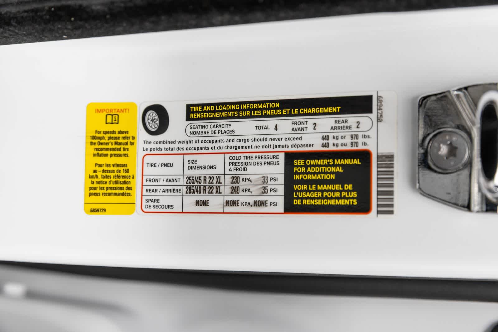 - Tamaño del neumático delantero: P255/40WR22