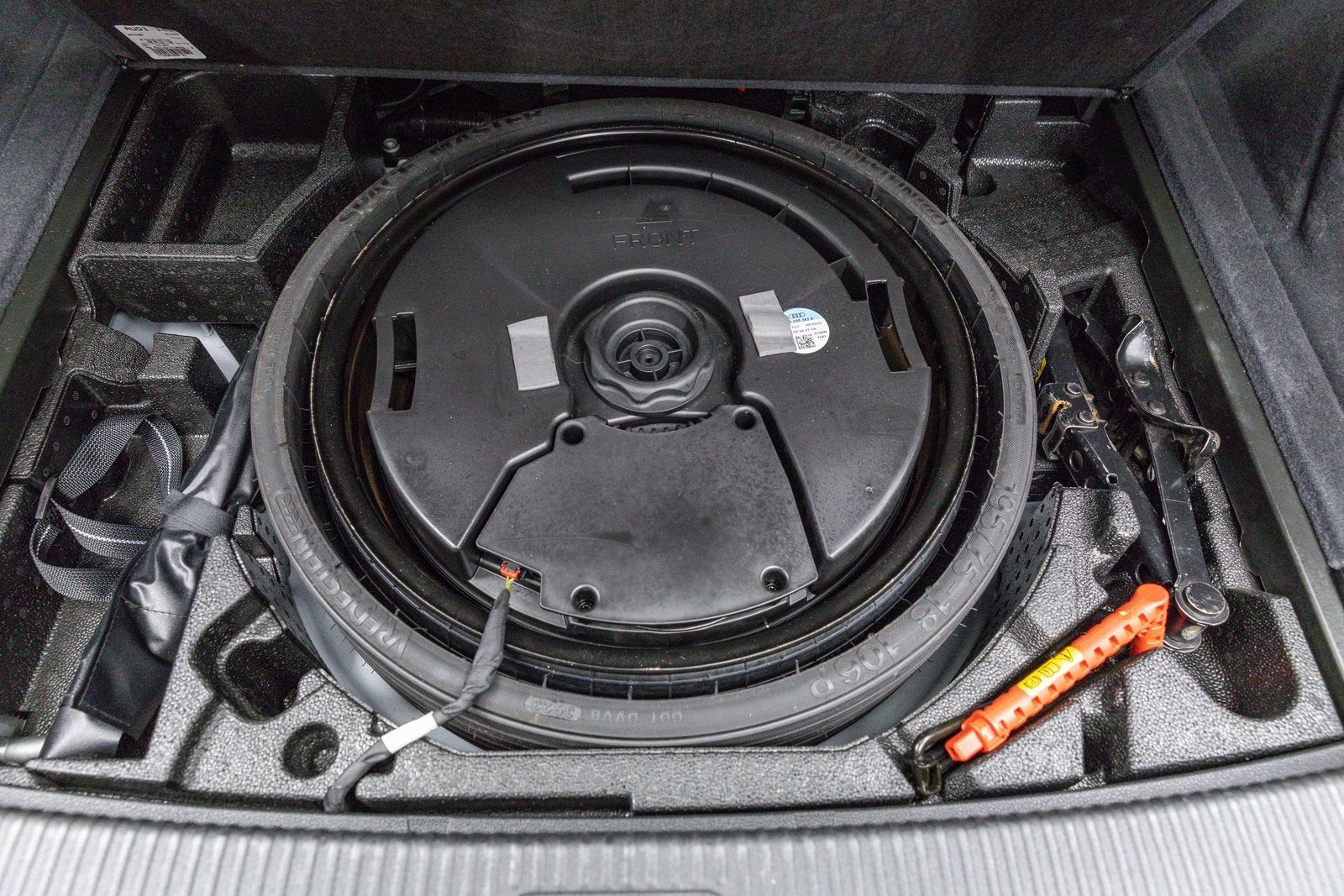 - Rueda de repuesto compacta montada en el interior bajo la carga